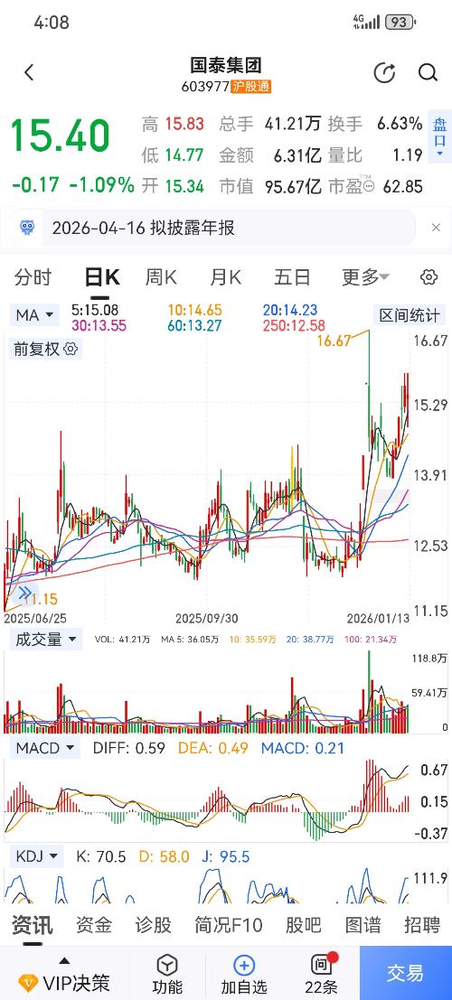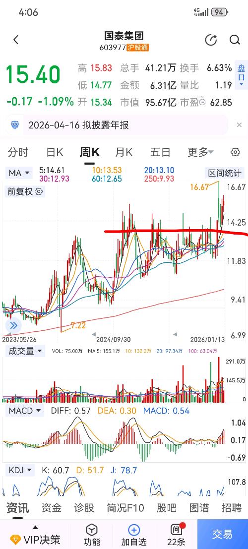 $国泰集团(SH603977)$603977国泰集团1月14日及后续走势分析:下图是周线和日线,能看出什么名堂不?周线和日线是不是都是突破箱体后的回踩,这两周走的就是对12月23日上影线的修复,操作模式也就是称呼为冲高回踩支撑模式吧。关键K线是12月29日和今天的K线,用的操盘逻辑我在不久前一个短贴说过,感兴趣的可以去看看。那这波回踩就是我们绝佳的上车机会,关键是哪里上车,理想是14.2到13.8...