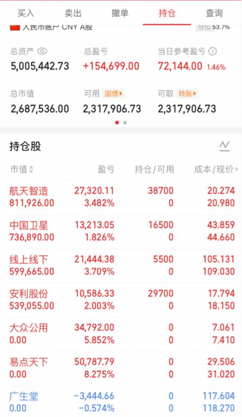 周五介入的: $易点天下(SZ301171)$成本29.50已清仓 周一介入的: $线上线下(SZ300959)$成本105.13 $航天智造(SZ300446)$成本20.27 安利股份300218成本17.79 中国卫星600118成本43.85