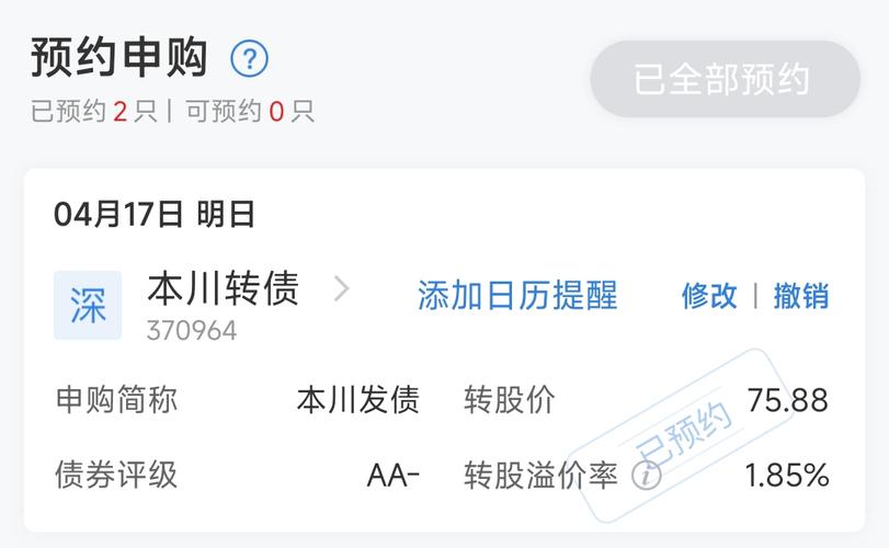 本川转债新债申购!04.17(155元,PCB)本川智能 1、本川转债新债申购分析。 本川转债发债规模4.69亿,PCB行业。配债缴款日/申购日:04.17。当前转股价值98,上市首日流通规模最小约2.25亿,行业热门,首日大概率达到155元。朋友们记得申购,配债的朋友一定记得是手动缴款。 PCB行业。概念有CPO、商业航天、机器人概念等。 股权登记日:04.16。 配债缴款日/申购日:04.17...