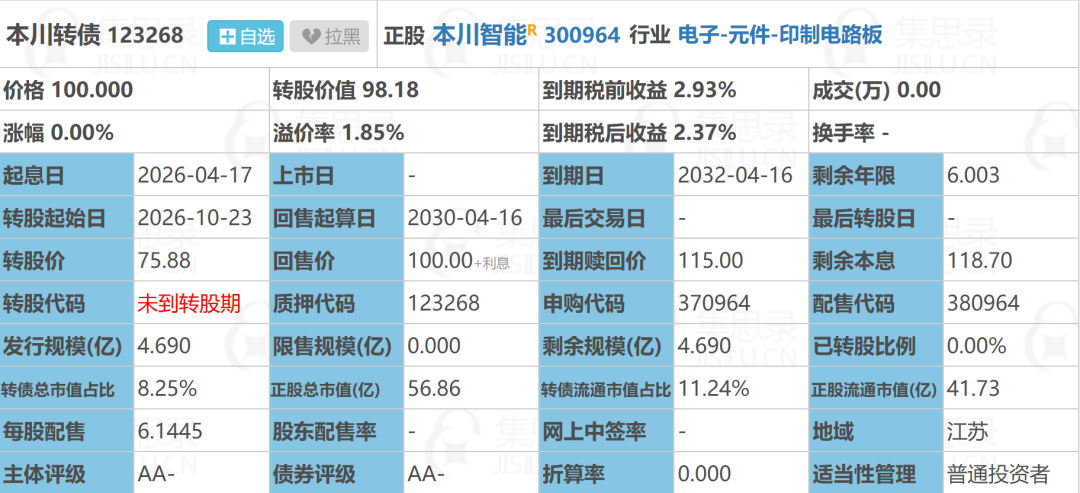 本川转债 新债申购!04.17(155元,PCB) 本川智能