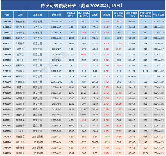 待发可转债统计表(截至2026年4月18日)—可转债发行提速,发债公司表现强势