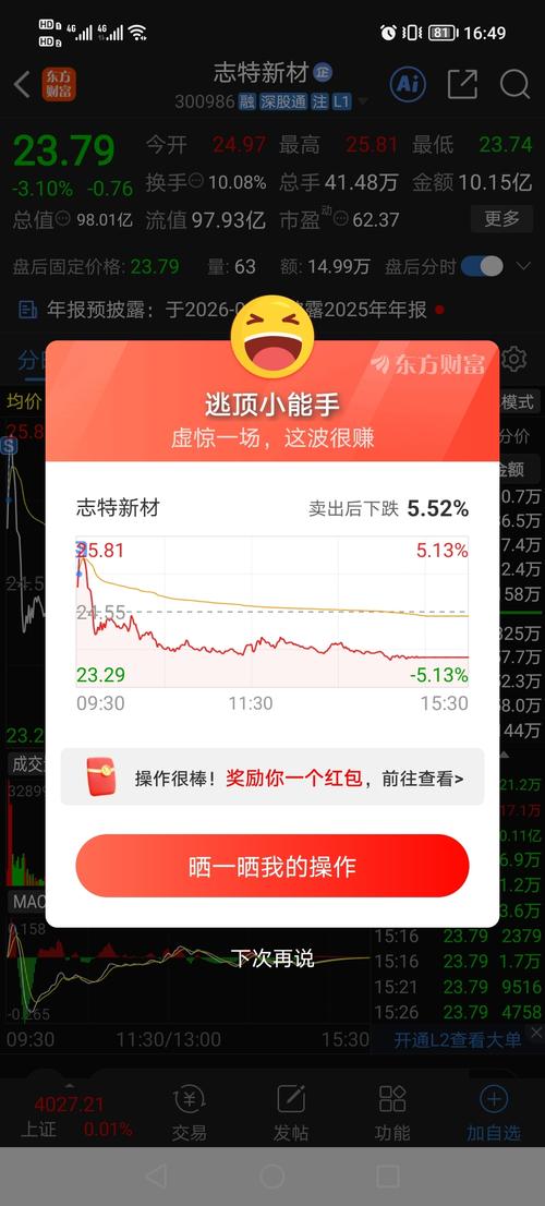 志特去年让我浮亏最多的股票,去年8月18日公司在上海隆重推出运用量子计算的产品阻燃材料,中报后大幅杀跌,在13元多买入,最低跌到9元多。也是我今年赢利最多的股票。今年1月2日观看中央二台中国科技盛典节目,元旦开盘后就满仓买入,翻三番退出。 昨晚看到英伟达推出量子计算开放大模型,今天竞价买入,后涨4%多又加了仓,被量化收割了,等年报出台,看阻燃材料的进程,再来决定进退。现在的市场只能中长线选择成长绩...
