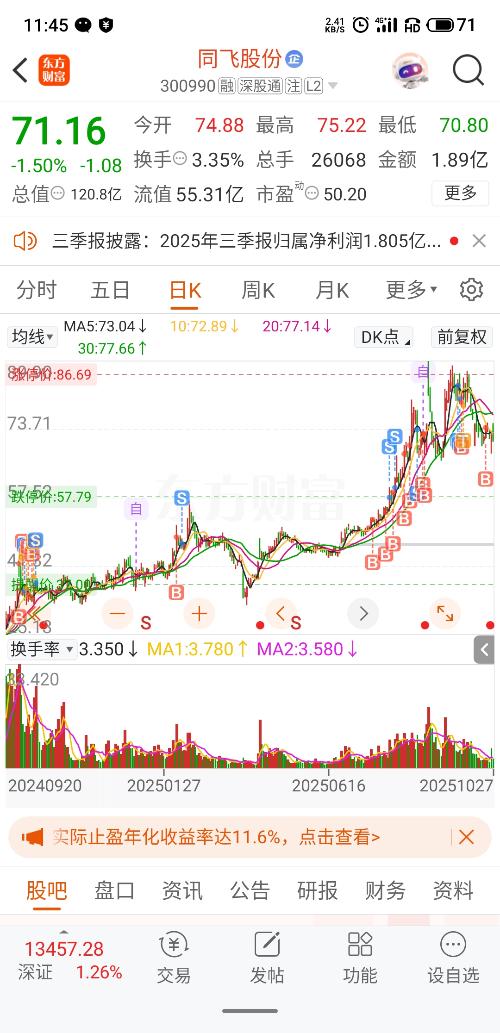 $同飞股份(SZ300990)$三季度业绩好不好看个人解读,如果全年业绩要达到机构的1.77,4季度需要0.70之多,利好和利空的是社保入驻了(社保入驻代表没多大风险,也代表---不知要磨多久)本人没持有。暂时也不准备买入。
