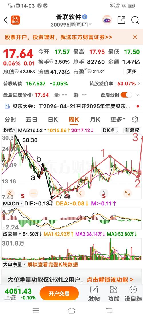 $普联软件(SZ300996)$ 一、公司基本面 公司属于软件服务板块,具有AI智能体、互联网金融、财税数字化、ERP、信创、小米、区块链、国产软件等概念,主营业务:为大型集团企业提供管理信息化方案及IT综合服务。一季报增142.18%并扭亏为盈,市盈率211.9偏高,基本面良好。 二、走势浪型分析(前复权图形观察)股价从历史高点下跌,呈a浪下跌、b浪反弹、c浪下跌走势,2024.02.06见低点...