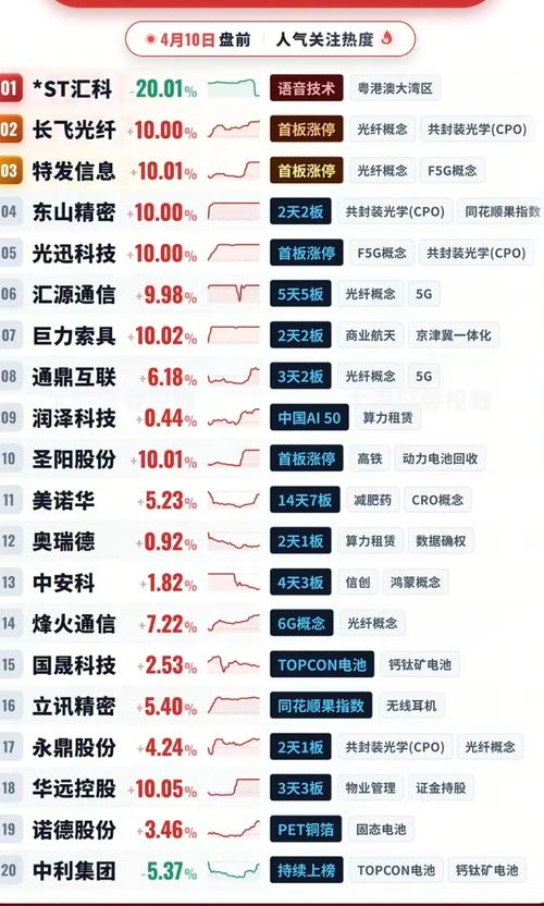 4.10周五盘前啊热搜人气榜! 1.光纤+CPO共封装光学 2.5G通信 3.算力租赁 4.减肥药+CRO 5.钙钛矿电池+固态电池