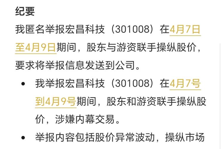 $宏昌科技(SZ301008)$目前举报已被受理,大资金进出全被监管了。你们还想拉涨停?一旦操控证实是真的,至少还要往下30个点。你们好自为之