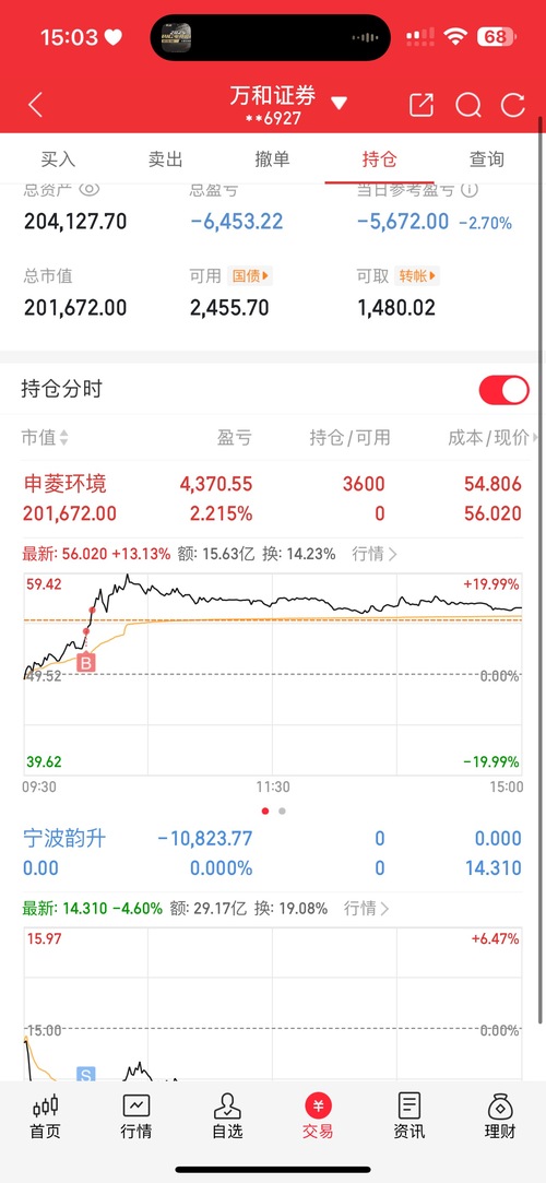 不忘初心,砥砺前行 过去的惨痛的代价,终将会成为我成功道路上的垫脚石。 昨天宁波韵升回踩拉升均线,我才进的。今天集合竞价弱转强,开盘翻红也没出,结果突然就一路向下。也就只有被迫持有了,等待其他突出的机会,申菱环境从51.5元眼睁睁看到,等到了突破新高54.73的申菱环境,然后就进了。盘中涨停后没封住。昨天出汇金股份,一来一回20多个点没了,亏大了。 $宁波韵升(SH600366)$$申菱环境(SZ301018)$...