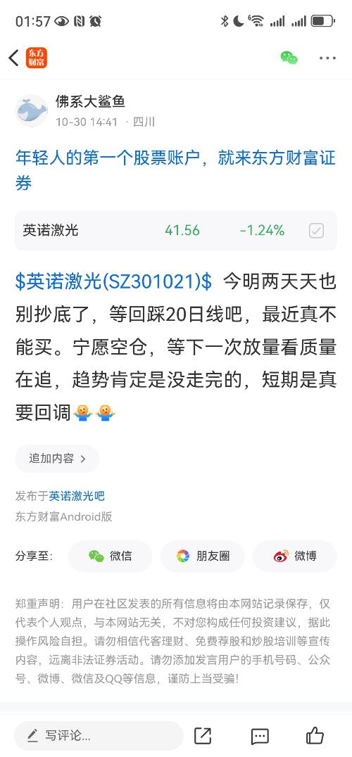 $英诺激光(SZ301021)$咱从49块8毛8那天上影线套人开始,我就一直提醒说这个票到头了,33元可接,四川RP杠精和广东RP杠精一直在骗散户。后面几根大阳线都是主力派发筹码做t骗散户的。