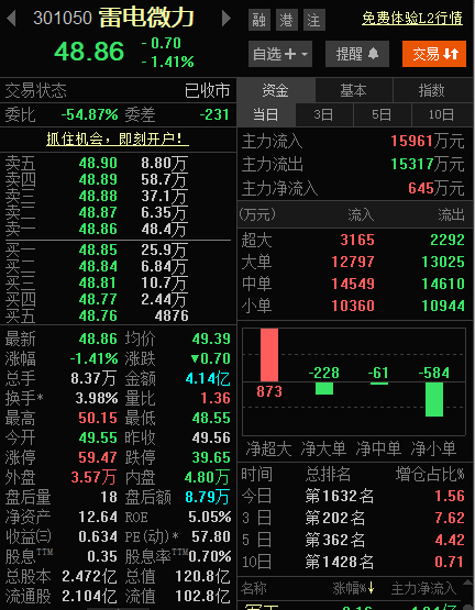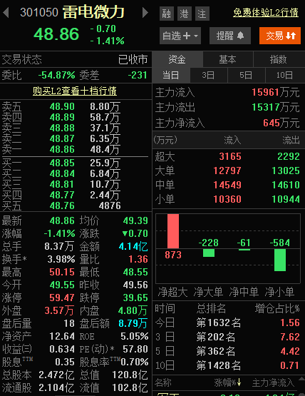 $雷电微力(SZ301050)$分分钟可以干跌停,完全没人接盘