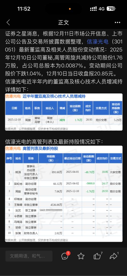 资讯 信濠光电:股东高瞻未减持,周旋减持17640股