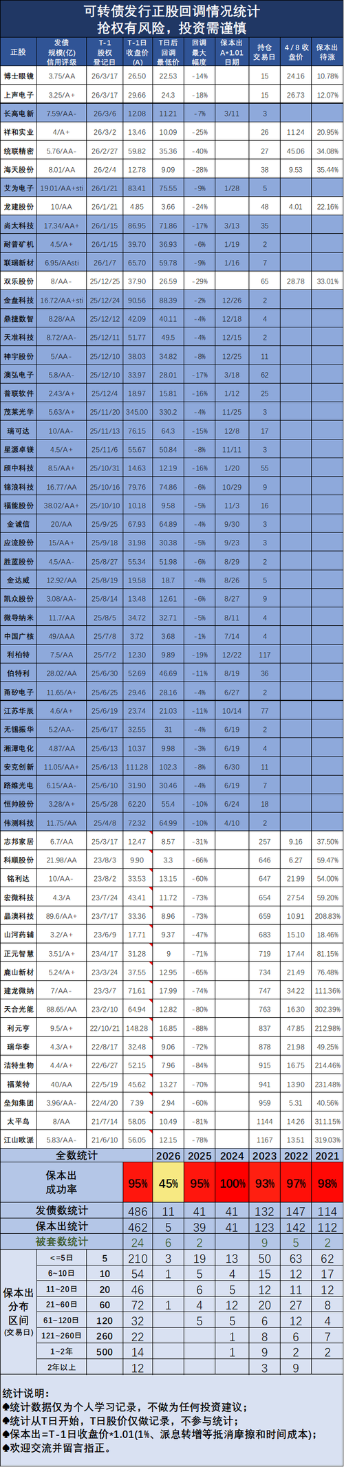 金三江 - 可转债发行同意注册 已上市可转债正股回调统计