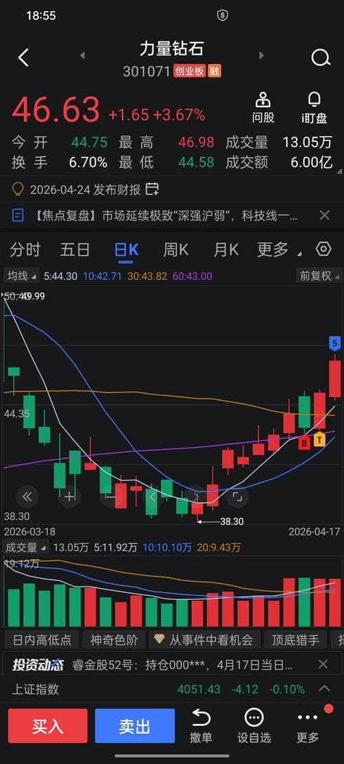 - 大胆预测:近期力量钻石从39元拉伸到当前46.6元,第六感觉认为应该是庄家主力提前预测或者获知第一季度业绩预期大幅提高,先知先觉资金跑步入场所致。 一年前2025年4月12日光模块还没有启动拉伸时,长飞光纤是这个光模块板块净资产最高的(相对股价)一只股票(当时长飞光纤股价30元左右,净资产16元左右),当时满仓买入没有恒心毅力拿住,当时瞧不起长飞光纤的投资者,现在高攀不起长飞光纤。同样的逻辑推理是培育钻石概念股票净资产最高的,现在瞧不起以后高攀不起。