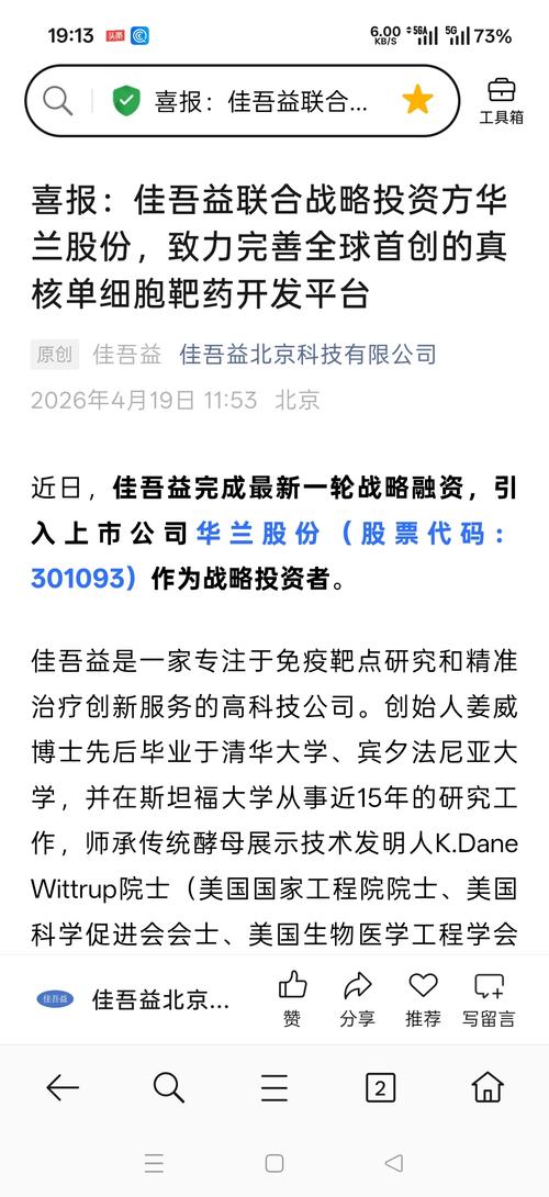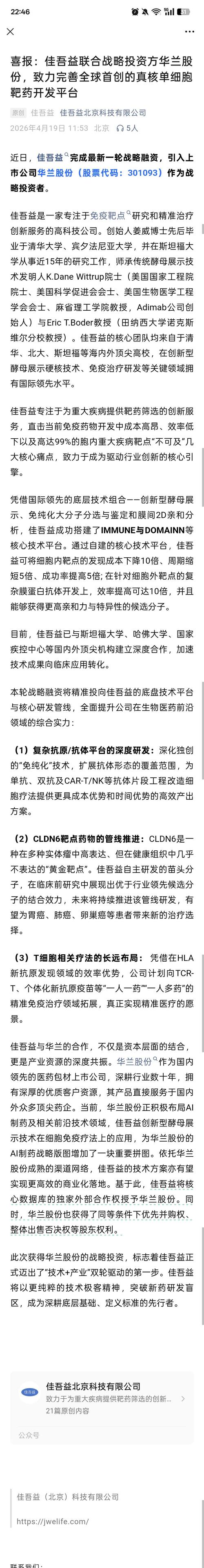 资讯 华兰股份战略投资佳吾益 一体化AI制药生态进一步完善