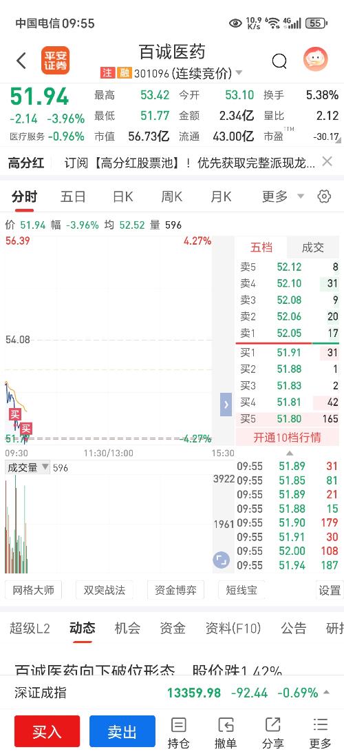 $百诚医药(SZ301096)$早上52.20割了以为割在最低点,没想到这垃圾,还有更低啊,一股亏了8块钱,认输,以后再也不买这股了