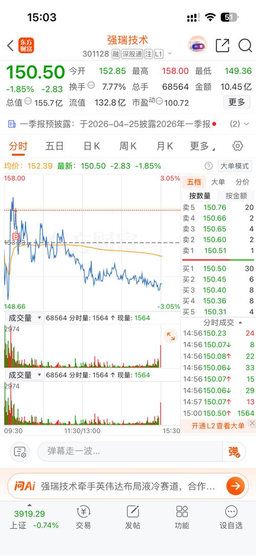 $强瑞技术(SZ301128)$成本154,早上155没走。。。不值得格局啊,卧槽了。