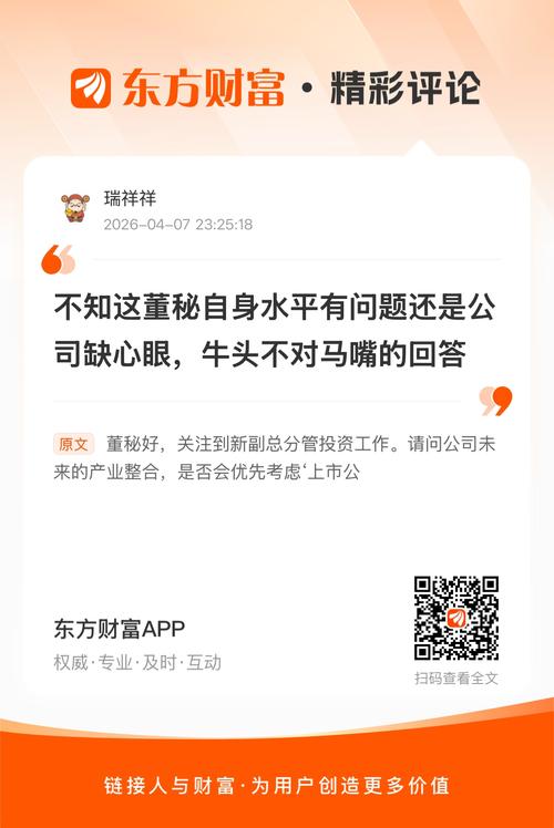 这企业发展不行,董秘水平也不行,不知道这企业到底做啥的,不务正业。//@瑞祥祥:不知这董秘自身水平有问题还是公司缺心眼,牛头不对马嘴的回答