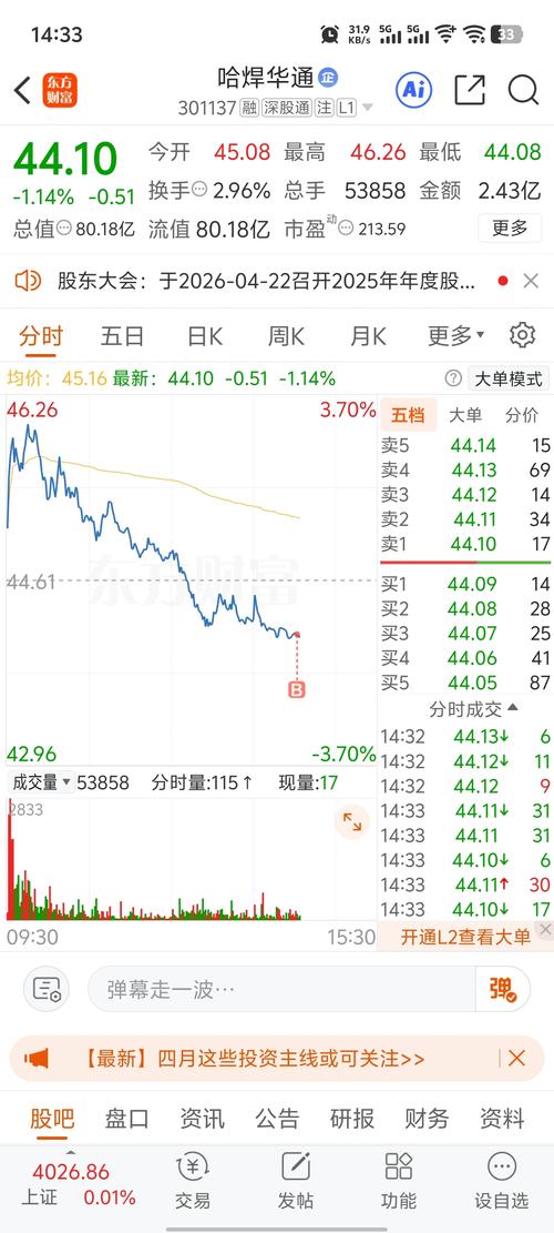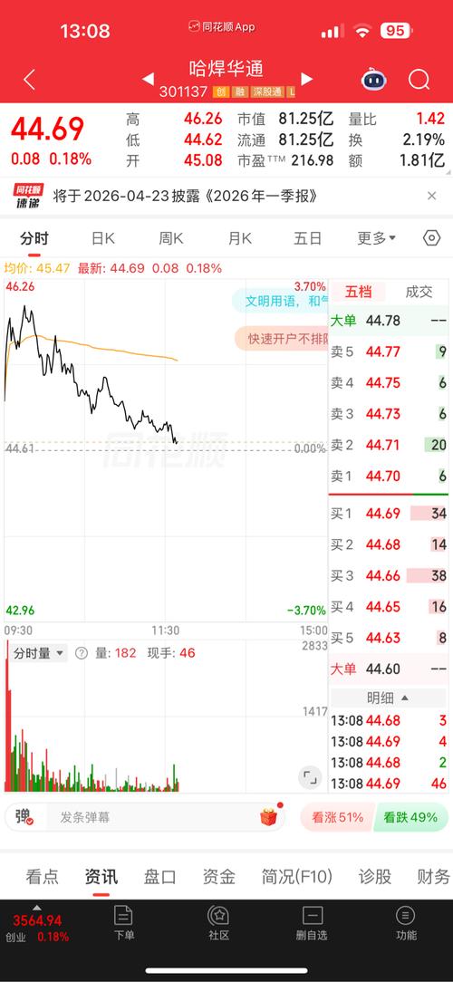 $哈焊华通(SZ301137)$早上45.2追进来的,怎么办