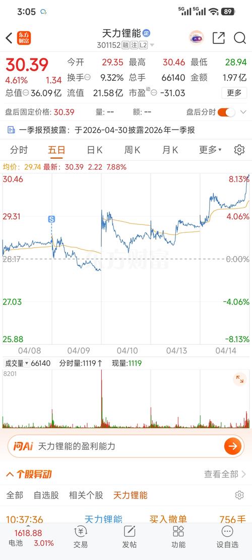 $天力锂能(SZ301152)$连续三天放量,应该一季报业绩可以