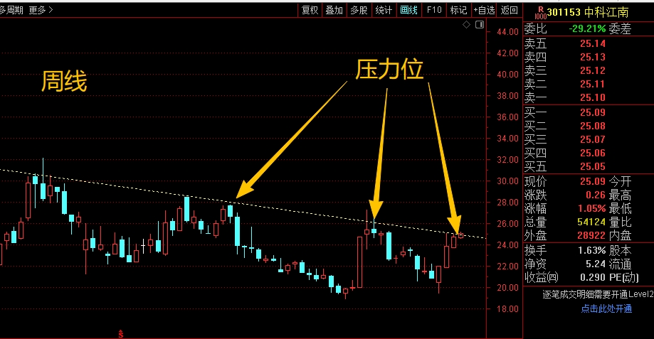 $中科江南(SZ301153)$中期趋势走得不强,整体看是偏向下震荡回落的格局,这里主要是看周线,最近几周的连续震荡反弹,周线来看回到了一个趋势线的压力位区间,接下来重点就需要看能否站稳,因为前期每次反弹到这个位置,都被精准压制,从来没有过突破站稳,所以当下再次回到这个位置,就要谨慎应对盘面了,操作上前面有低吸的可以考虑高抛应对,不用纠结后面是否还能继续拉升,控制好仓位来观察比较稳健。