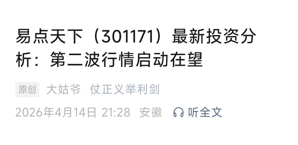 $易点天下(SZ301171)$易点天下(301171)第二波行情启动在望 目标价180元