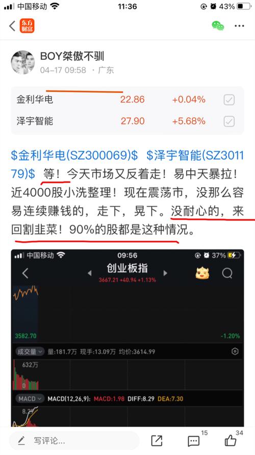 $金利华电(SZ300069)$$泽宇智能(SZ301179)$等!今天市场又反着走!易中天暴拉!近4000股小洗整理!现在震荡市,没那么容易连续赚钱的,走下,晃下。没耐心的,来回割韭菜!90%的股都是这种情况。