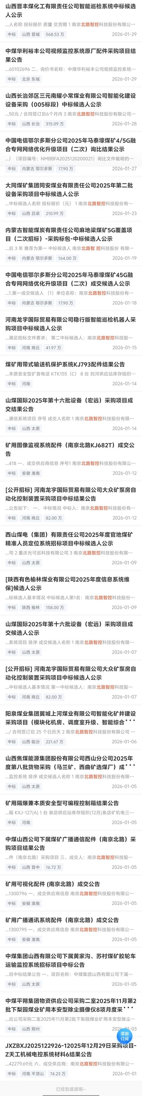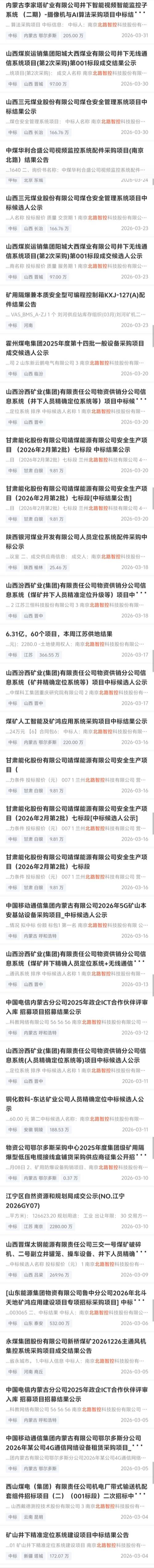 $北路智控(SZ301195)$1-3月部分中标信息,好坏不清楚。