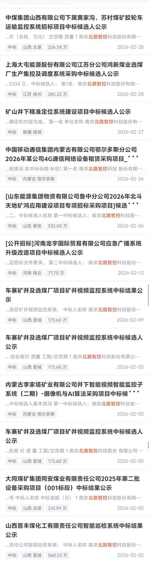 $北路智控(SZ301195)$中标河南龙宇国贸煤流自动化控制系统77万