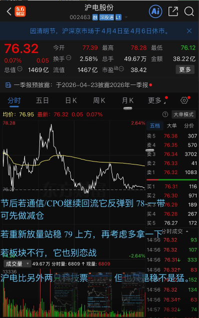 $沪电股份(SZ002463)$$联环药业(SH600513)$$诚达药业(SZ301201)$ 1.、沪电股份 这票本质上还是科技核趋势票,今天全天围绕均线震荡没涨,但也没明显破位。 消息面:沪电股份属于“PCB+AI算力硬件”方向,逻辑没问题,但板块整体热度在降温,资金从高位科技开始分流,短期偏弱震荡。 技术面:股价从高位93附近回落后,进入横盘下行通道,目前运行在多条均线下方,反弹无力,量能...