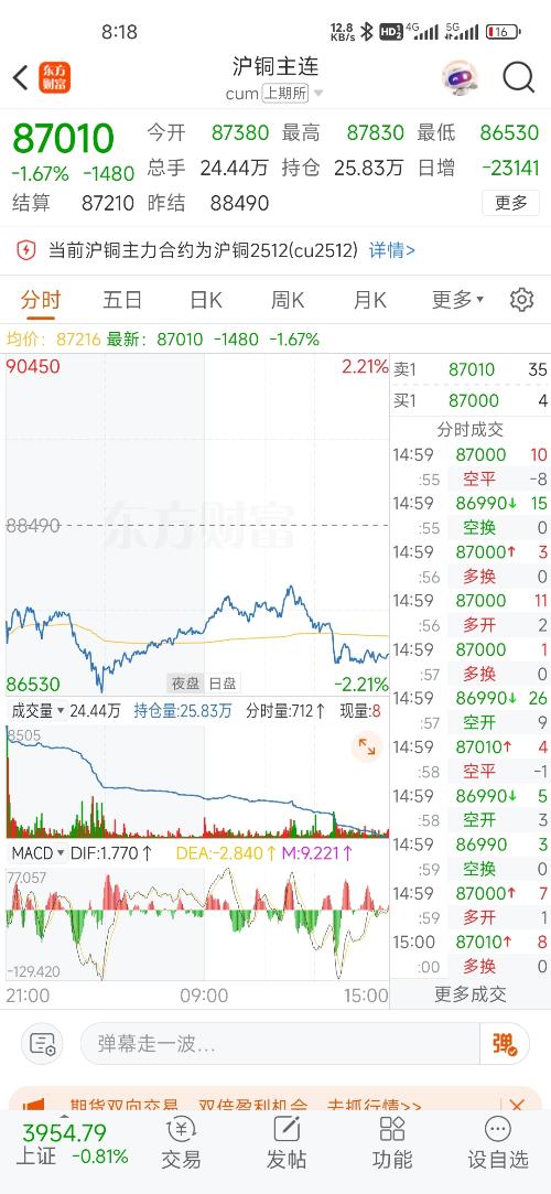 铜全天跌了1480元!