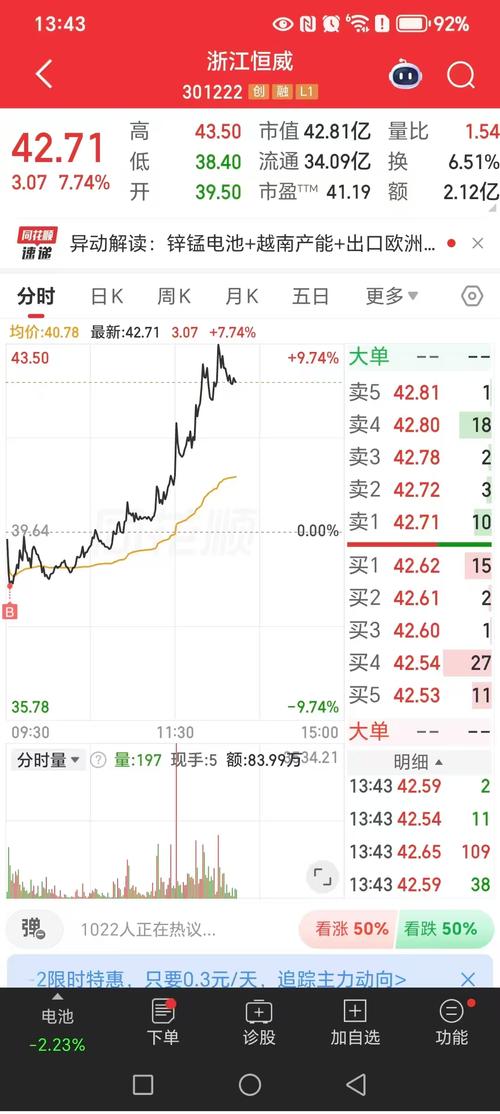 $浙江恒威(SZ301222)$浙江恒威持仓不动:碱性电池为主、出口为王,汇率红利+新业务放量,机构看好,耐心拿住吃肉。 $智动力(SZ300686)$实盘记录:持有智动力,消费电子精密件隐形冠军,客户优质,转型新能源,小仓耐心持有。