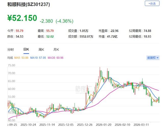 A股异动 | 和顺科技跌逾4% 2025年净亏损1.82亿元