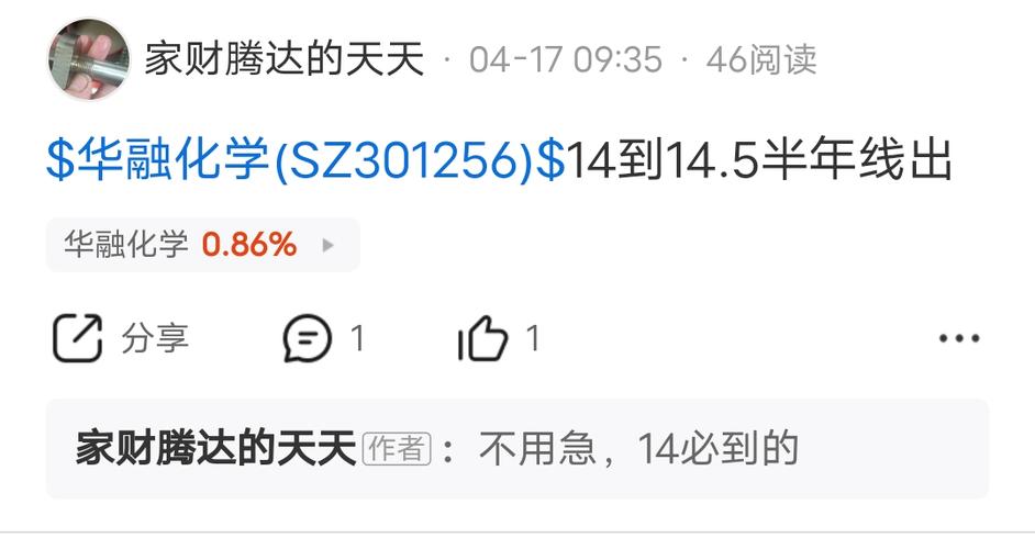 $华融化学(SZ301256)$ 继续做T4月份成本破13就可以了。5月份尽量成本做到11元计划下降2元股数争取稳定4万股。