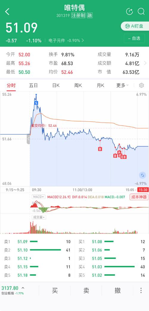 $唯特偶(SZ301319)$54买的呀,怎么办啊