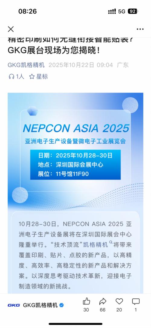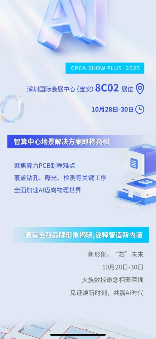$凯格精机(SZ301338)$$大族数控(SZ301200)$ 邀请函|算力潮涌,大族数控邀您共赴CPCASHOWPLUS $凯格精机(SZ301338)$$2025精密印刷如何无缝衔接智能贴装?GKG展台现场为您揭晓!10月28-30日,NEPCONASIA2025亚洲电子生产设备展将在深圳国际展会中心隆重举行。“技术顶流”凯格精机将带来覆盖印刷、贴片、点胶的新产品,以高精度、高效率、高稳定性...