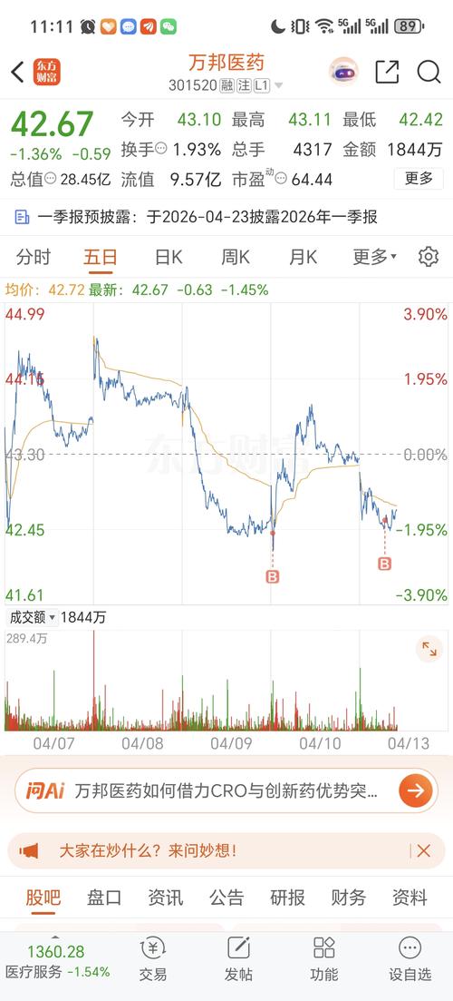 $万邦医药(SZ301520)$今天会站上45吗