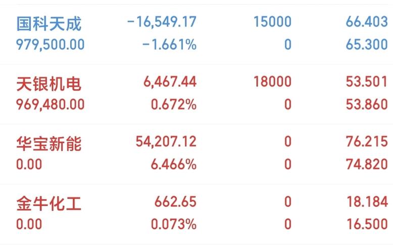 新入$天银机电(SZ300342)$$国科天成(SZ301571)$,出$金牛化工(SH600722)$华宝新能 天银机电今日收涨7.72%,换手率14.97%。全天高开高走,早盘快速拉升后维持强势,最终收于高位,受益于卫星导航、军工及太空算力板块共振走强。短期整体呈强势上行态势。 国科天成今收涨0.99%,当日开盘63.99元,最高触及68.30元(创历史新高),换手率5.87%。早盘冲高(最高...