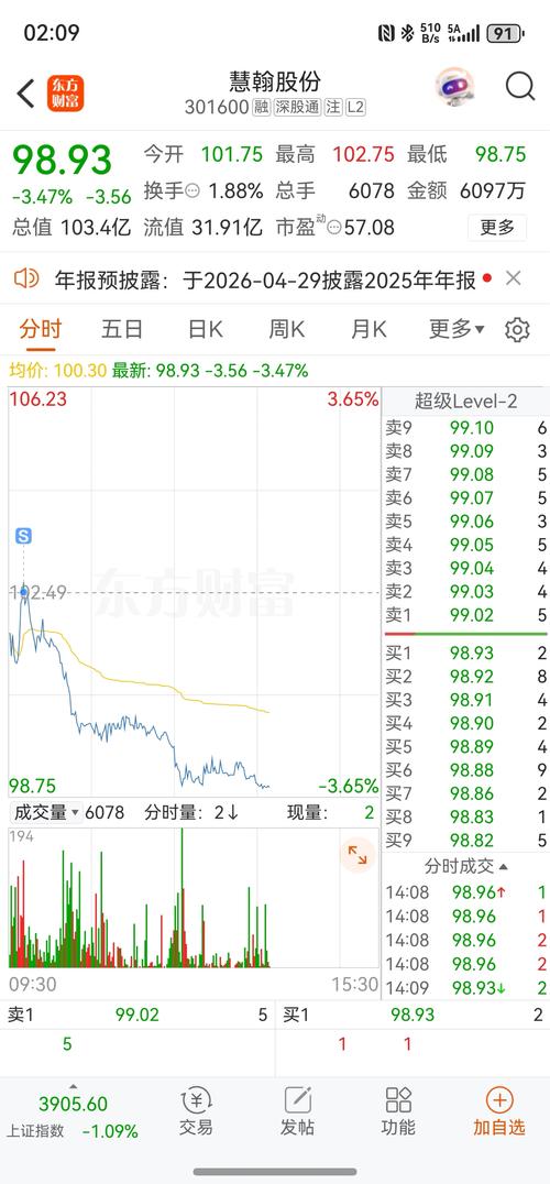 $慧翰股份(SZ301600)$1手人为买单都没有,纯量化,哈哈哈,经常从早上9点30开盘跌到收盘3点
