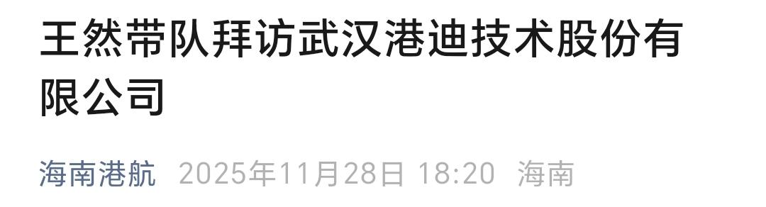 $港迪技术(SZ301633)$ 近日,海南港航控股有限公司董事长王然率队拜访武汉港迪技术股份有限公司,与港迪技术董事长向爱国就深化合作,围绕港口智能化、绿色低碳技术应用及业务合作拓展等核心议题展开深度座谈。 向爱国董事长对王然董事长详细介绍了港迪技术在港口智能化领域的技术优势与实践成果。港迪技术专注于工业自动化及信息化领域,业务涵盖自动化驱动产品、智能操控系统、管理系统软件三大板块,与海南港航有...