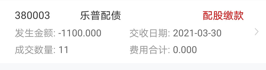 1200股乐普配11张,缴款的,但没那么快显示在持有里