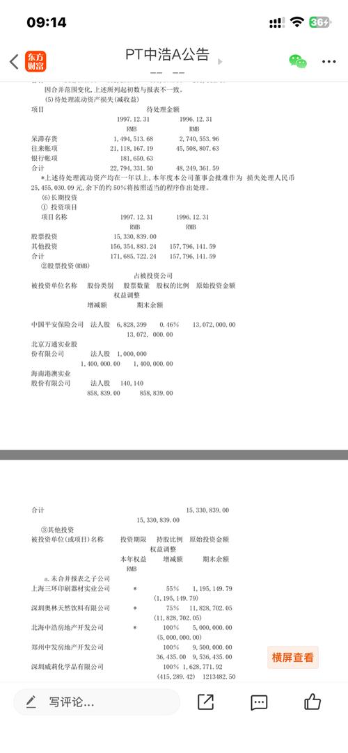 $R中浩A1(SZ400011)$无意中翻看公司1997年年报、显示公司除了有在深圳价值连城的房产、还有约0.5%的中国平安股份!