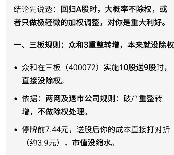 $众和3(SZ400072)$别高兴得太早了,重整要缩股,10缩1.