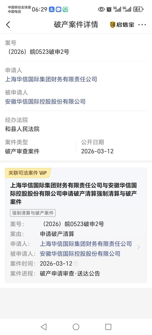 $R华信控1(SZ400076)$时间案件类型核心内容结果 2019年10月企业借贷纠纷与焦作亿利小贷公司2.765亿元借款诉讼最高法判令华信国际偿还本金及罚息、违约金 2023年证券虚假陈述诉讼投资者因财务造假索赔上海金融法院判决华信国际连带赔偿3.12万元 2026年3月破产清算申请上海华信财务公司申请对华信国际破产清算法院已送达通知书,待公司异议期结束 2026年3月25日开庭公告(平台标注...