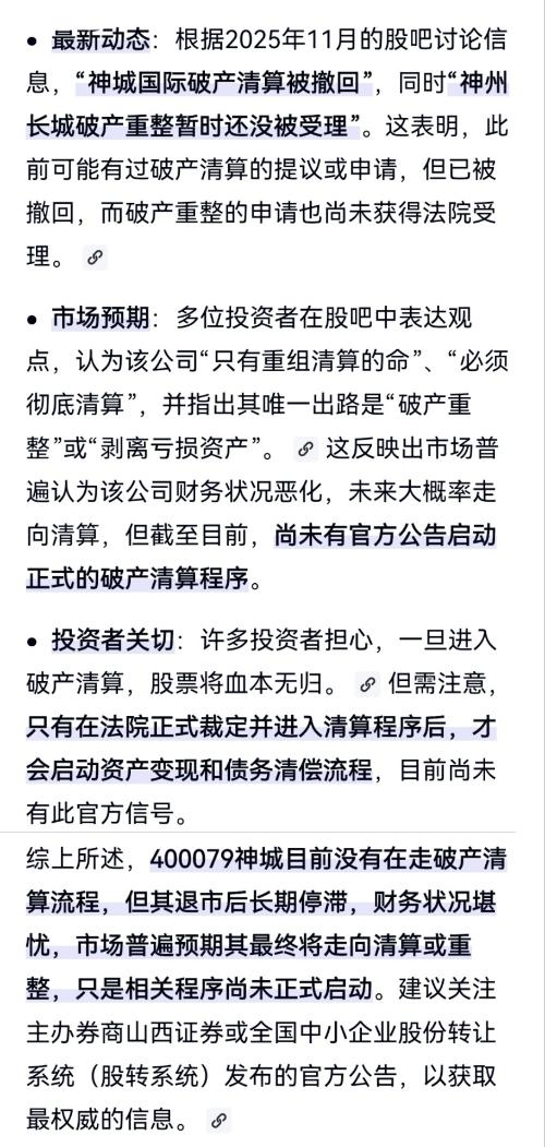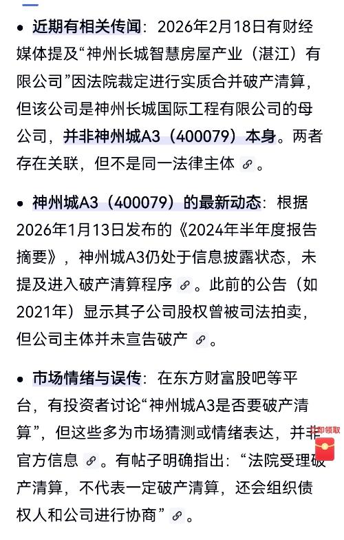 基于现有公开信息,神州长城国际工程有限公司的母公司——神州长城智慧房屋产业(湛江)有限公司,因法院已裁定进行实质合并破产清算,