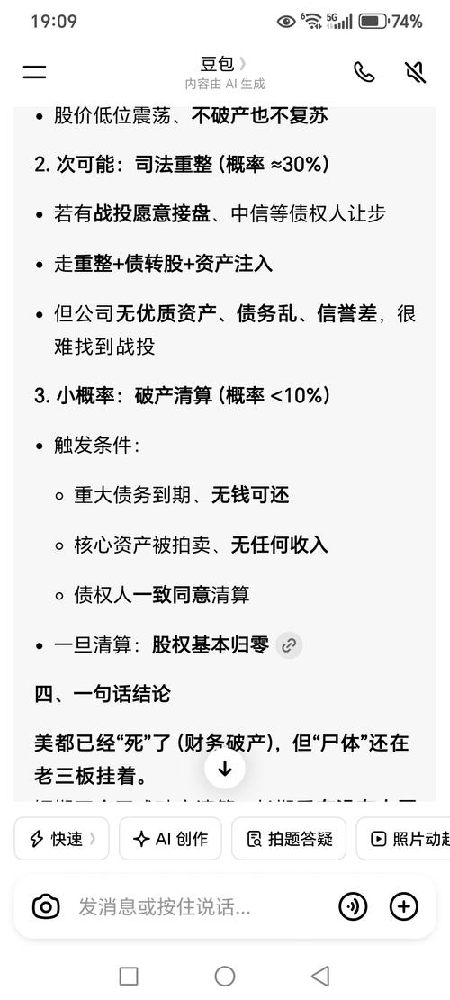 $美都5(SZ400088)$美都末来三年大概率是低位疆而不死80%破产清算与破产重整各10%概率!