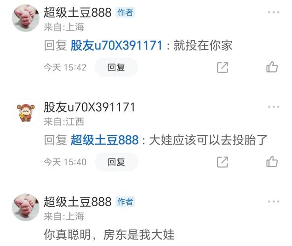 $S佳通(SH600182)$$秋林3(SZ400101)$有人说踏空了,要找土豆,有人说套住了,要找土豆,有人说亏钱了,要找土豆 那土豆就反问一句,赚钱的你们会分土豆一半吗? 股市是成年人博弈的市场,大家都用自己的真金白银血汗钱在博弈,所以就不要说小孩子的话,炒股盈亏是自己的事,没有人会为你的盈亏买单