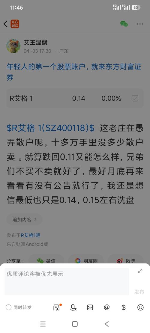$R艾格1(SZ400118)$这个股吧就像菜市场一样,短期来看大涨难,每个人都以为自己中彩票了一样,买到宝了一样,全在自己想象