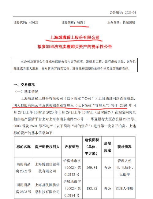 有点意思啊,每次都是域潇一马当先!反向收购日月系拍卖资产。这是一个实质性的好的开始 这里面有这么几层深意。 1)各个公司都比较关注日月系的破产,不然不会关注到并报名拍卖 2)既然涛涛也会参与日月系资产拍卖,那么届时股权上架的时候肯定也会拍卖,毕竟还有优先购买权。 3)同理,西水、明科也有参与拍卖的可能性 $域潇3(SZ400122)$$明科5(SZ400125)$$西创5(SZ400119)$
