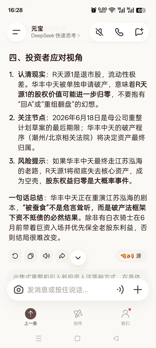 $R天源1(SZ400121)$ 看看吧,唯一一个能吸引战投的都被债权人申请破产了,大概率会和江苏鸿海罐子一样被新投资人蚕食掉,成功离清算更近一步了,反驳我的人时间会证明一切的,