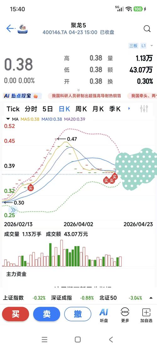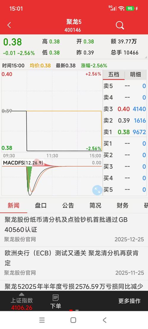$聚龙5(SZ400146)$昨天下午的0.38买单没成交,今天继续买,坚定的买,坚持持有,待到山花烂漫时。