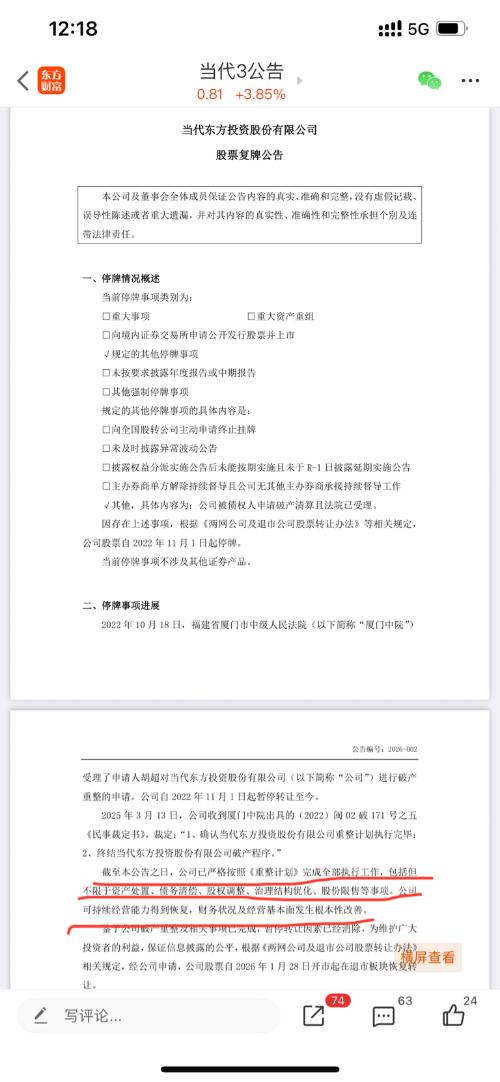 $当代3(SZ400147)$$中银5(SZ400236)$$天通5(SZ400237)$必须要持仓翻看当代3年报的财务状况的底牌,一定要看什么叫财务状况和经营基本面发生根本性改善!当代3复牌公告难道敢说假话,不怕再关几年吗?谅他没公告说假话的胆子:“公司可持续经营能力得到恢复,财务状况及经营基本面发生根本性改善”